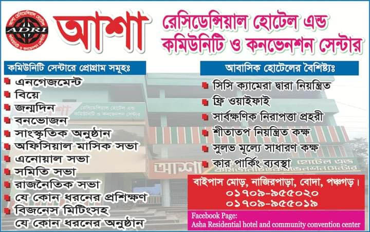 পঞ্চগড়ের বোদায় ১ম মানসম্মত, নিরিবিলি আবাসিক হোটেল ও কমিউনিটি সেন্টার।