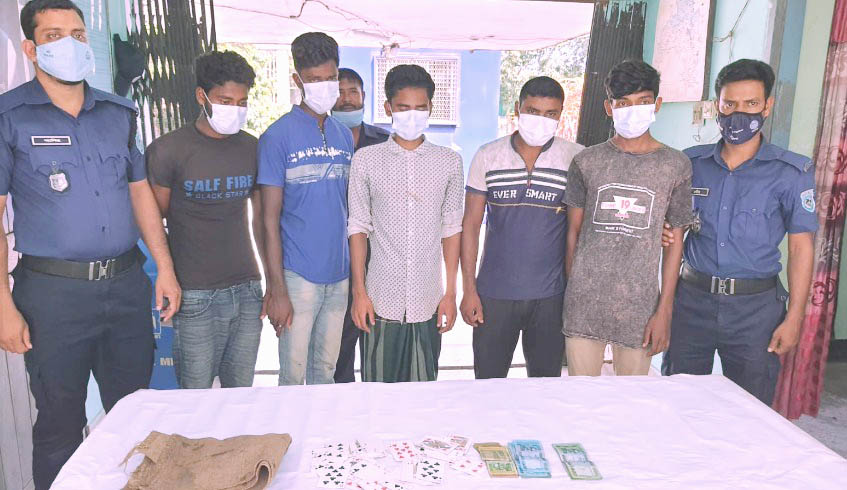 পামুলী ইউনিয়ন এর নগর গ্রাম থেকে ৫ জুয়াড়ী গ্রেফতার।
